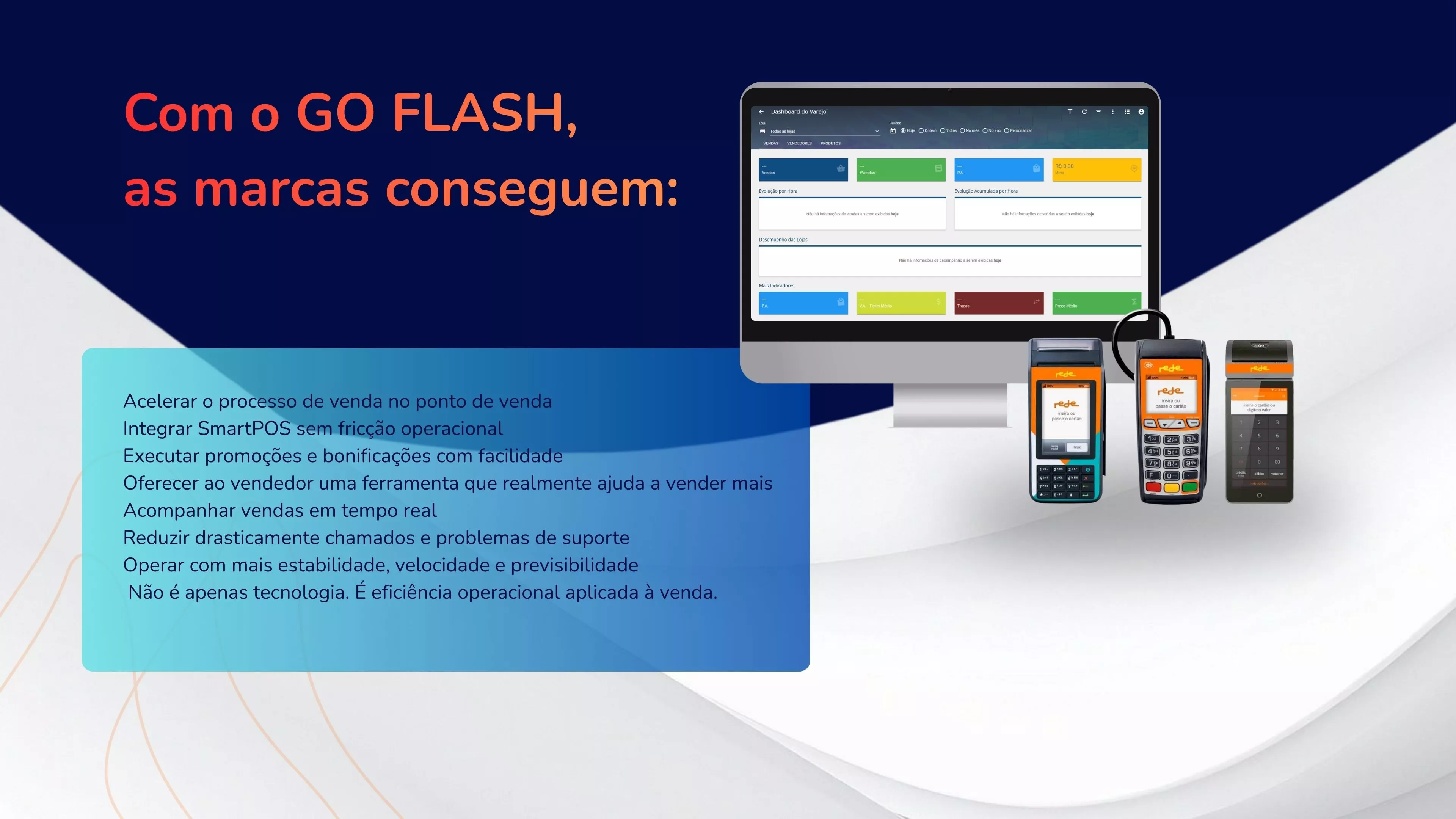 O GO FLASH integrou o SmartPOS, o programa de bonificação, o motor de promoções e a visualização de vendas em tempo real.
